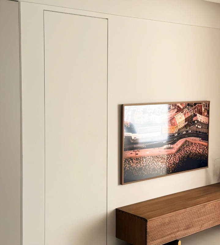 隐形门是在网上逐渐走红的装修,它是将卧室门跟家里面的背景墙融合了一体,从表面上来看,你都找不到卧室门的位置。