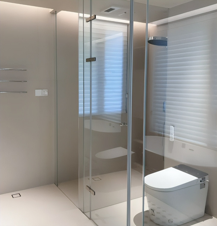 当初卫生间为了干湿分离,就听从师傅都建议,在里面做了玻璃淋浴房!