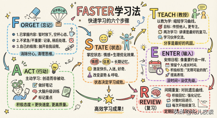 这是《无限可能》中高效学习法FASTER的核心精髓之一。FASTER学习法的第一个字母F,就代表“Forget (忘记)”。